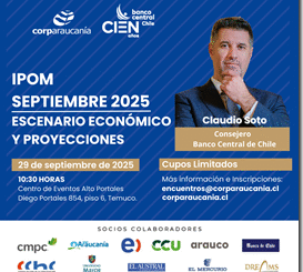 Consejero del Banco Central de Chile expondrá IPoM de Septiembre en Temuco