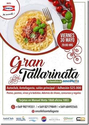 Con el objetivo de reunir fondos que irán en directo beneficio de las niñas y niños oncológicos del norte de Chile, la Corporación Oncofeliz invita a la comunidad de Antofagasta a participar de una nueva versión de su ya icónica Tallarinata, versión 2025.