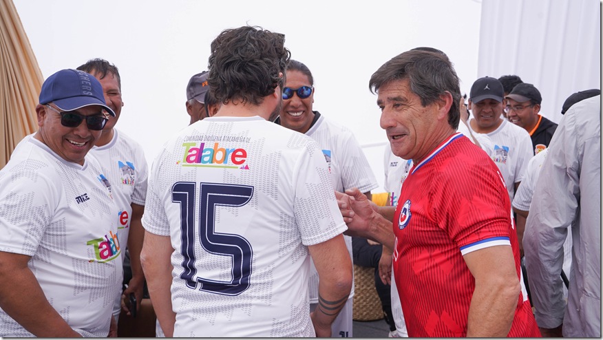 El acto inaugural incluyó un partido amistoso entre el equipo local de Talabre y un combinado de jugadores históricos de la selección chilena. Entre ellos, el doble campeón de América, Gonzalo Jara, quien compartió su experiencia con los talentos de la localidad: “Tienen tremenda cancha la verdad, es muy buen pasto sintético el que tienen. Que lo puedan ocupar de buena manera, que lo puedan utilizar para hacer fútbol. Vi muchas mujeres que les gusta jugar fútbol y me alegra mucho que puedan hacer deporte”.