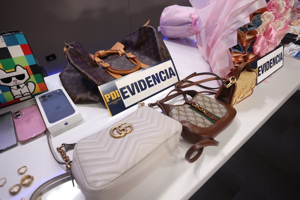 La colaboración de Bridec Antofagasta se explica por la ejecución de diligencias en la región y por la incautación de especies asociadas al patrimonio de la organización. El operativo, según se informó, culminó con la incautación de $103 millones de pesos chilenos, 18 mil dólares, 2.120 pesos argentinos, cinco vehículos, teléfonos celulares, computadores portátiles y un alto volumen de artículos de lujo: ropa, zapatillas, lentes, carteras y relojes, “todo de marca”.