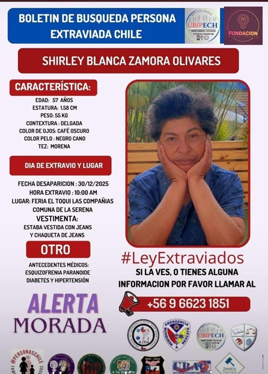 Un efectivo trabajo interregional de la Policía de Investigaciones de Chile permitió ubicar en la ciudad de Antofagasta a una mujer de 57 años que se mantenía extraviada desde el pasado 30 de diciembre, luego de perderse su rastro en la Feria del Toqui, en la comuna de La Serena.