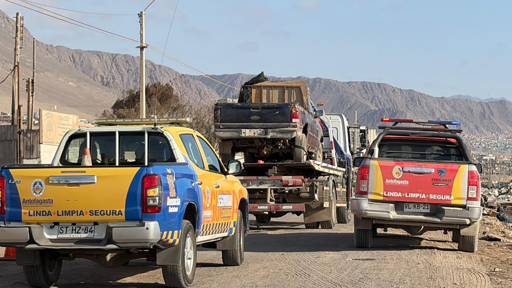 Municipio de Antofagasta retira vehículos tras vertido ilegal de escombros en Sector Norte