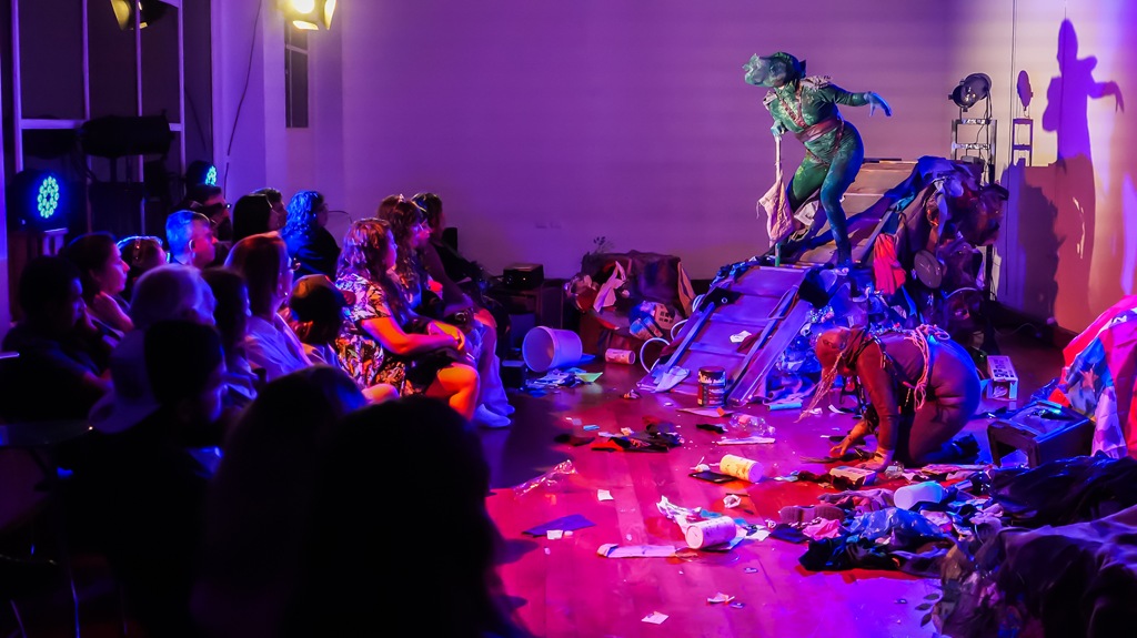 La Compañía Eclipse con su obra “Via Exterminio”, propone una experiencia escénica visual y corporal ambientada en un futuro distópico donde la sobreexplotación de los recursos naturales ha transformado el desierto en un territorio contaminado y hostil. En este paisaje emergen cuerpos mutados que viven marginados en la línea del tren, configurando una nueva naturaleza humana marcada por la producción desmedida y la amenaza de la extinción.
