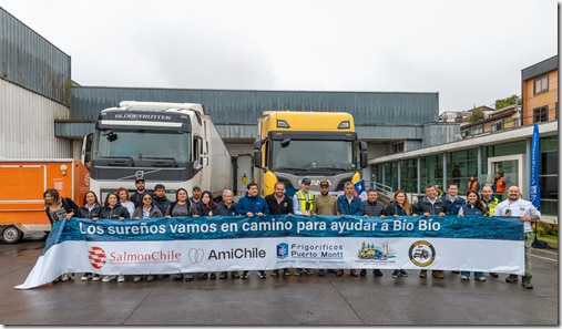 En tanto, Ricardo López, representante de SalmonChile, destacó el compromiso del sector con las comunidades afectadas. “Esta es una campaña que iniciamos hace ya 10 días atrás con nuestras empresas asociadas, la cadena productiva del salmón y la acuicultura de ir en ayuda de los damnificados del Biobío con el propósito de dar la posibilidad de alimentar a las personas damnificadas, a las familias ligadas al sector productivo del salmón o de la zona, para tener alimento de calidad durante los próximos dos meses”, aseguró.