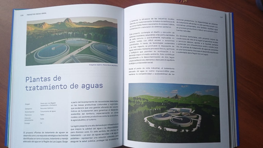 El portafolio propone proyectos a escala basal, como el Centro Tecnológico de Economía Circular, una red de colectores de aguas lluvias, plantas de tratamiento de aguas y el mejoramiento de bordes costeros, entre otros. A escala social, se propone un Archivo Regional Los Lagos, el Museo Vivo de Ciencia y Biodiversidad, hospitales de mediana complejidad, polideportivos comunales y un centro oncológico regional entre otros. A escala productiva, se propone un aeropuerto de Chaitén, el terminal de Castro, un puerto de cruceros en Lechagua, puentes menores, calles y caminos regionales, un corredor bioceánico y ascensores y teleféricos para Puerto Montt.