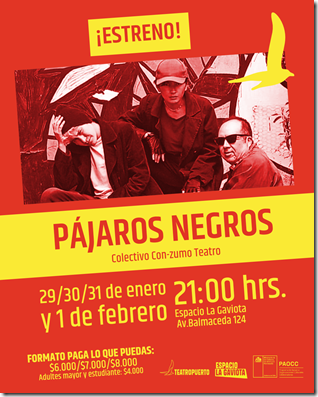 Espacio La Gaviota, centro de creación, formación y exhibición en Artes Escénicas con 10 años de existencia a cargo de la organización TeatroPuerto, cierra esta semana su Temporada de Verano 2026 con el estreno regional de la obra “Pájaros Negros”. Las funciones se realizarán entre el 29 de enero y el 1 de febrero a las 21:00 horas, en el espacio ubicado en Avenida Balmaceda #124, en Barrio Almagro.