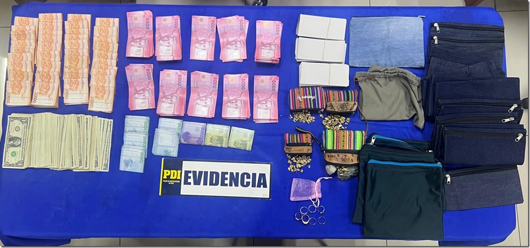 Durante el procedimiento, los detectives lograron incautar $5.479.000 (cinco millones cuatrocientos setenta y nueve mil pesos) en dinero en efectivo, además de dólares americanos y transferencias realizadas por uno de los imputados con destino a su propia cuenta bancaria en la ciudad de Tacna, Perú.