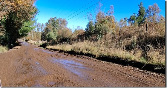 Hay que destacar que las malas condiciones de esta ruta se deben además a los trabajos que actualmente ejecuta una empresa contratista en el marco del proyecto de Agua Potable Rural, APR. Las faenas no han considerado medidas adecuadas para resguardar la integridad del camino, generando barro, acumulación de tierra y deterioro de la carpeta granular, lo que pone en riesgo el tránsito seguro.