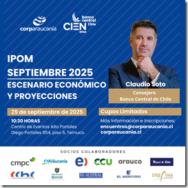 La cita es este lunes 29 de septiembre a las 10:30 horas en el Centro de Eventos Alto Portales de Temuco en un evento organizado en conjunto entre el Banco Central de Chile y Corparaucanía.