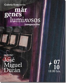 El próximo 07 de octubre, a las 18:00 horas, Galería Kom , ubicada en Aldunate 898 (Temuco) inaugurará la exposición “Márgenes Luminosos” del artista José Miguel Durán, una actividad gratuita y abierta que busca acercar la creación y el arte contemporáneo al público temuquense.