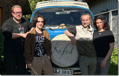 “Según lo que me enteré, somos los únicos teloneros a nivel mundial de Steven Wilson, porque él no suele tener teloneros”, indicó Carlos Cruz, vocalista, guitarrista y líder de la agrupación Kafod que hace siete años está radicada en Pucón, con su tecladista y esposa Paula De Marco, el baterista de 16 años (su hijo), Juan Salvador Cruz De Marco y el bajista Matías Astudillo. “Es una tremenda oportunidad. Siempre me imagino que pueden pasar grandes cosas después de conocer a grandes personas. Y que esas grandes personas también ya nos hayan escogido, quizás por una afinidad musical, o porque les gustó la energía del proyecto”, agregó el responsable de haber “perseguido” por años a la figura de Wilson, a quien los puconinos por adopción le ofrecerán que “se involucre, quizás, en la producción de nuestro cuarto álbum. No sé, podría pasar”, indicó Cruz.