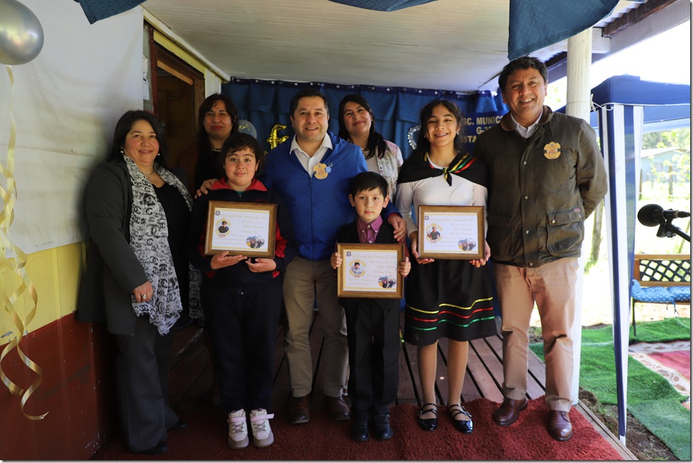 El alcalde Jaramillo destacó la labor y compromiso de la directora Leticia Matus, la docente Claudia Silva y la asistente de la educación Gladys Díaz, a quienes, dijo, “mantienen viva la escuela con vocación y entrega”. Además, el edil agregó que “a pesar de estar tan lejos de Lautaro, ellos se sienten partícipes de la comuna y es por esto que hemos llegado para visibilizar nuestra ruralidad y que mejor culminando con nuestro himno comunal, así que agradezco la invitación y felicito todos quienes componen esta linda escuela de Vista Hermosa”.
