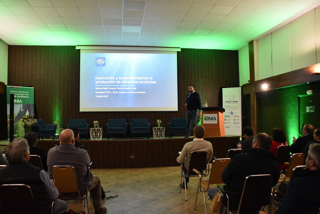 “Este seminario reúne a investigadores, empresas, agricultores, representantes del Estado y de la industria acuícola, todos comprometidos con una misma idea: producir en Chile los insumos vegetales que alimentan a nuestra salmonicultura, y hacerlo de manera sostenible, eficiente y con menor huella de carbono”, destacó el Dr. Daniel Nieto Díaz-Muñoz, gerente del PTEC-INVA, en la apertura de la jornada.