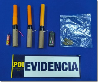 Según informó la PDI, los oficiales se percataron de que el sujeto efectuaba “sonidos similares a disparos en la vía pública”, lo que motivó un control de identidad. En el registro, encontraron entre sus vestimentas artefactos pirotécnicos de origen artesanal, un petardo y cannabis sativa, motivo por el cual fue aprehendido de inmediato.