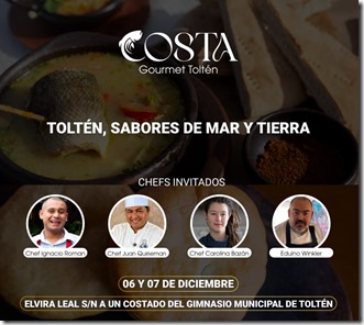 Toltén será este fin de semana el punto de encuentro de la cocina del territorio con una nueva edición del Encuentro Costa Gourmet, iniciativa que busca relevar la riqueza gastronómica y cultural de la Costa Araucanía. El evento se desarrollará este sábado 6 y domingo 7 de diciembre, entre las 10:00 y las 21:00 horas, con actividades pensadas para toda la familia.