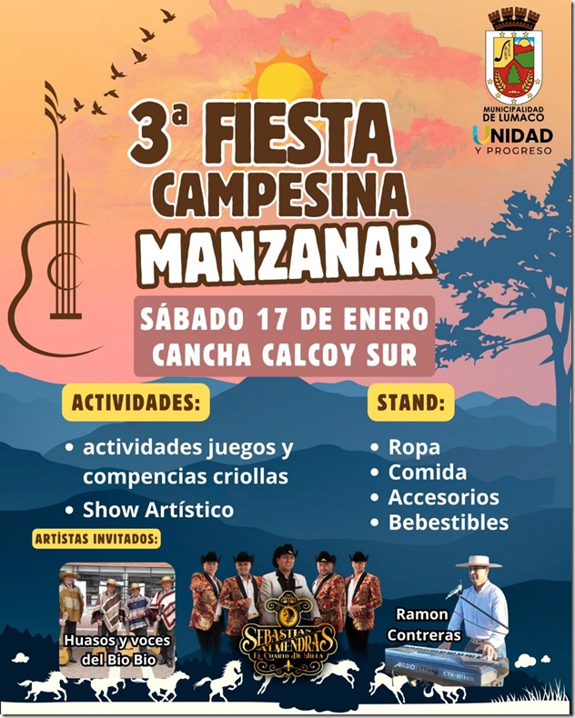 Uno de los panoramas especiales que se realizarán será en el sector Manzanar en la cancha Calcoy Sur, donde se llevará a cabo la tercera versión de la Fiesta Campesina.