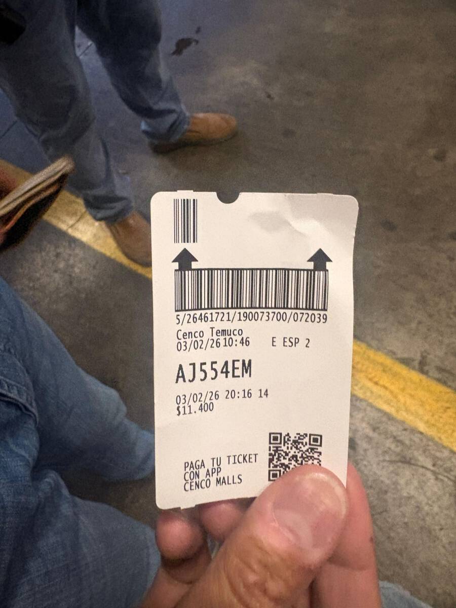 El afectado, Marcos Peñalva, señaló que el martes 3 de febrero concurrió al centro comercial junto a su esposa e hija, tras trasladarse desde Pucón para realizar compras. Según su relato, dejó su vehículo en el estacionamiento del mall —que actualmente cobra $20 por minuto— y durante la jornada regresó en dos oportunidades a guardar las compras realizadas.