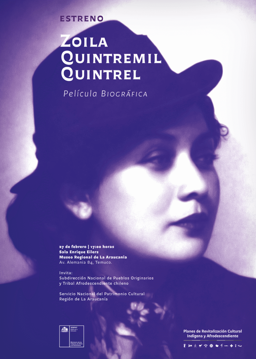 En el marco del Día Internacional de la Lengua Materna, proclamado por la UNESCO y conmemorado cada 21 de febrero, la Subdirección Nacional de Pueblos Originarios y Tribal Afrodescendiente Chileno (SUBPOA) del Servicio Nacional del Patrimonio Cultural realizará el lanzamiento de la película biográfica “Zoila Quintremil Quintrel”, una pieza audiovisual que rescata la vida y obra de esta destacada profesora mapuche.