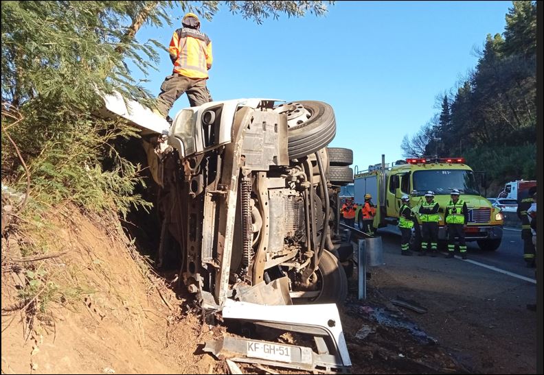 Un trágico accidente de tránsito se registró la tarde de este martes, alrededor de las 18 horas, en la Ruta 5 Sur, a la altura del sector conocido como cuesta Mininco, a unos 10 kilómetros al norte de Collipulli, dejando como saldo el fallecimiento del conductor de un camión que transportaba productos lácteos.