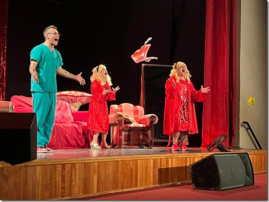 La puesta en escena, dinámica y cargada de situaciones disparatadas, fue protagonizada por Andy Alvarado, actor y productor con amplia trayectoria en la actuación y producción de espectáculos; Óscar Garcés, reconocido actor de teatro y televisión que integró el elenco de “Machos”, protagonizó “Don Floro” y “Porky te amo”, además de ser finalista del recordado programa “Protagonistas de la Fama”, y que tras perfeccionarse en México retomó su carrera en Chile; y la propia Marilú Cuevas, querida figura del espectáculo nacional con una extensa trayectoria que incluye el teleteatro de Canal 13, el clásico programa “Jappening con Ja”, además de participaciones en “Sábados Gigantes”, “Teatro en Chilevisión” y “Morandé con Compañía”, entre otros espacios.