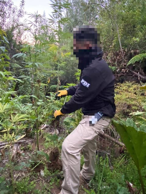 La diligencia fue liderada por la Unidad de Análisis Criminal y Focos Investigativos (Sacfi) de la Fiscalía Regional de Los Ríos, en conjunto con la Brigada de Investigaciones Policiales Especiales y Antisecuestros (BIPE) de la PDI, en el marco de una investigación por cultivo de cannabis sativa y tráfico de drogas.