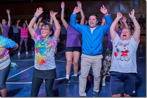 El evento contó con la participación especial del invitado Richi Ángel, quien encendió el ambiente con su carisma y ritmo. Asimismo, las profesoras Romina Méndez, Yass Quintriqueo y Marie Carmen López lideraron dinámicas rutinas que hicieron vibrar a los asistentes, motivándolos a disfrutar de la actividad física de manera entretenida y participativa.