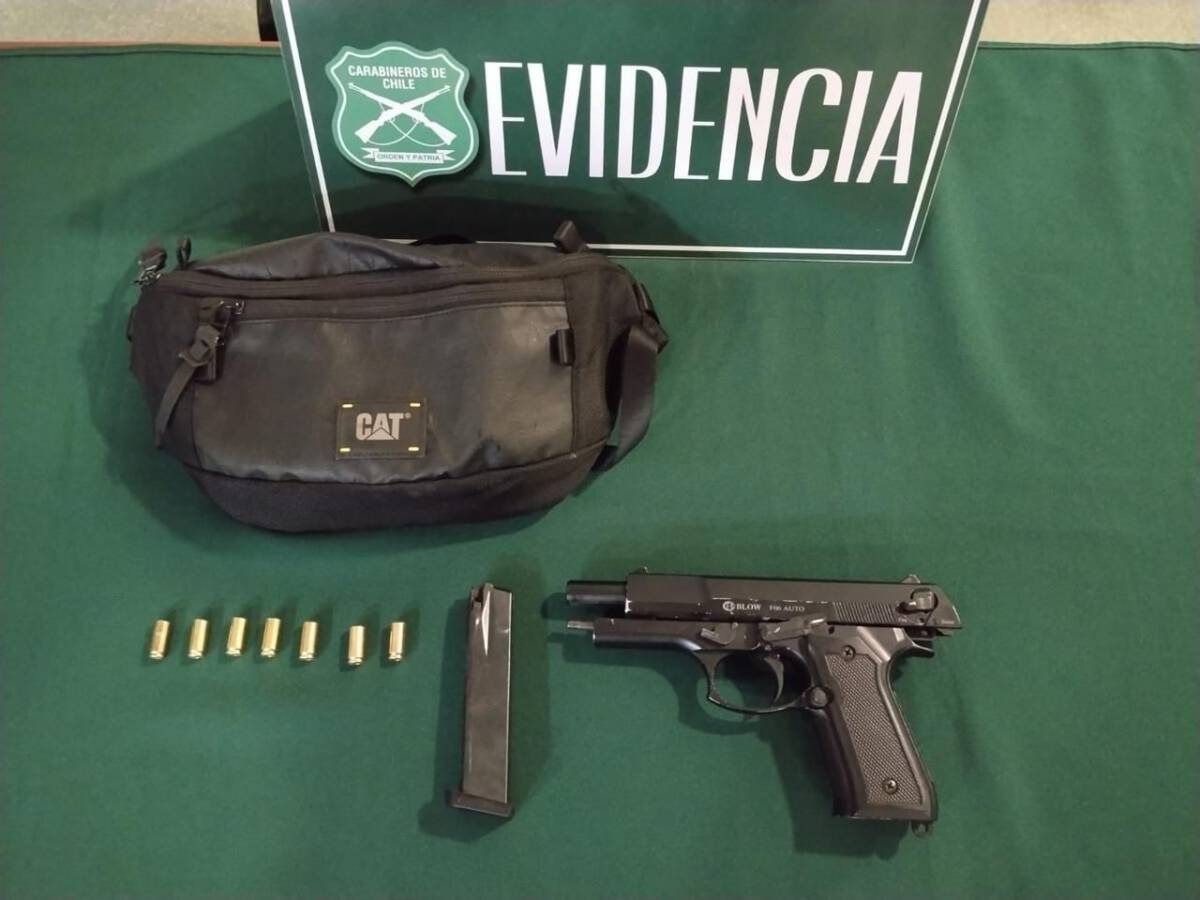 “Carabineros de esta unidad fue alertado por un funcionario que se encontraba en su calidad de franco se percató de la presencia de un individuo que manipulaba un armamento de fuego tipo pistola y efectuaba disparos al aire en la vía pública. Por tal motivo, y ante la rápida llegada del personal policial, se logró su detención y la incautación de una pistola calibre 9mm y 7 cartuchos a fogueo en su interior”, precisó el Capitán Mario Contreras Muñoz, de la 1ª Comisaría de Lautaro.