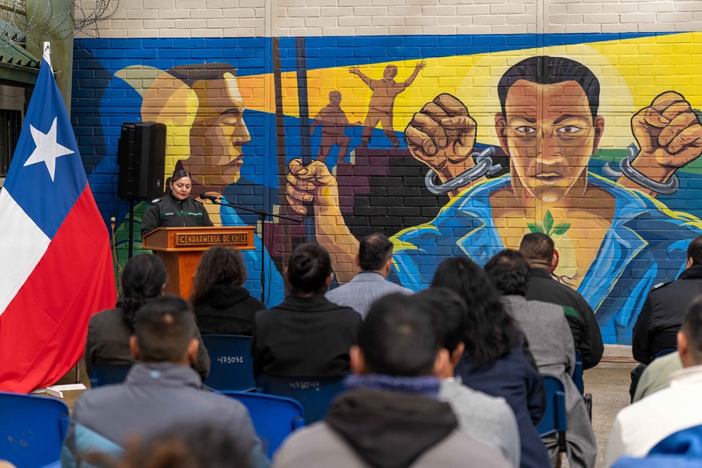 Esta semana se realizó la inauguración del mural realizado en el Centro de Cumplimiento Penitenciario Río Bueno, como parte del taller realizado por el artista nacional Carlos Escuvier, el cual se enmarca en el Programa Vistas Artísticas Fondart.