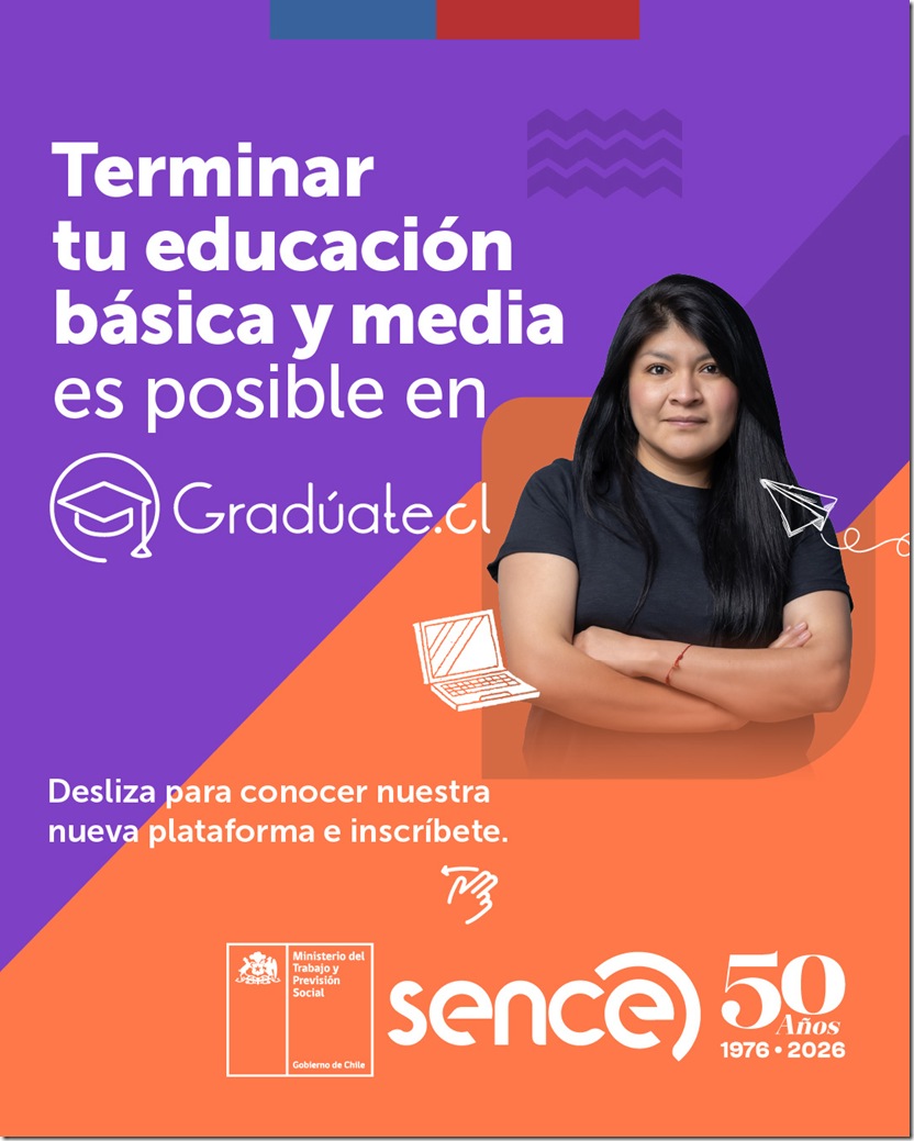 En el marco de su misión de promover la empleabilidad y la educación para personas adultas, el Servicio Nacional de Capacitación y Empleo (SENCE) en la Región de Los Lagos invita a la comunidad a inscribirse en la plataforma gratuita “Gradúate”, una herramienta 100% online que permite preparar los exámenes libres del Ministerio de Educación (MINEDUC) y así obtener la licencia de enseñanza básica o media.