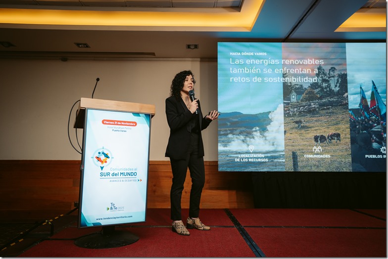 En representación del sector energético, María José Sarmiento, jefa de Relacionamiento Comunitario y Asuntos Públicos de Innergex, presentó la experiencia que la empresa desarrolla en la zona centro sur, donde sus iniciativas impactan a más de 270 mil familias, entre ellas comunidades vinculadas a la Central Hidroeléctrica Licán en Río Bueno.