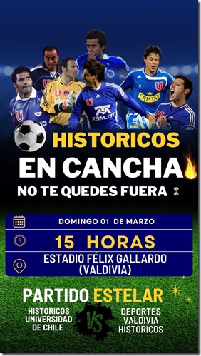 Valdivia se prepara para vivir una tarde especial de fútbol el domingo 1 de marzo de 2026, cuando a partir de las 15:00 horas los Históricos de Universidad de Chile enfrenten a Deportes Valdivia Históricos, en un partido de exhibición que promete emoción y recuerdos para hinchas de todas las edades.