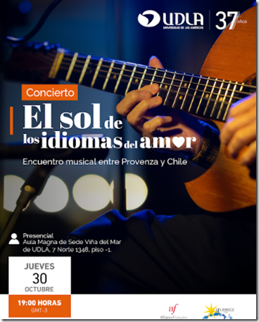 La presentación musical se realizará el jueves 30 de octubre a las 19:00 horas en el Aula Magna de UDLA Campus Los Castaños, ubicada en 7 Norte 1348, piso -1. La entrada es liberada y abierta a todo público.