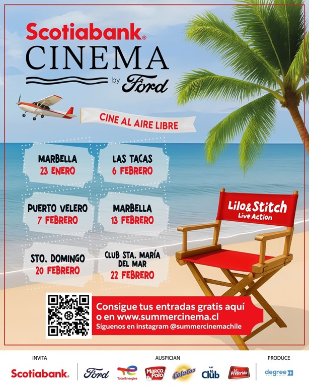 Marbella, Santo Domingo y Santa María del Mar serán parte del circuito “Scotiabank Cinema by Ford”, que ofrecerá cine al aire libre con la película Lilo & Stitch durante enero y febrero.