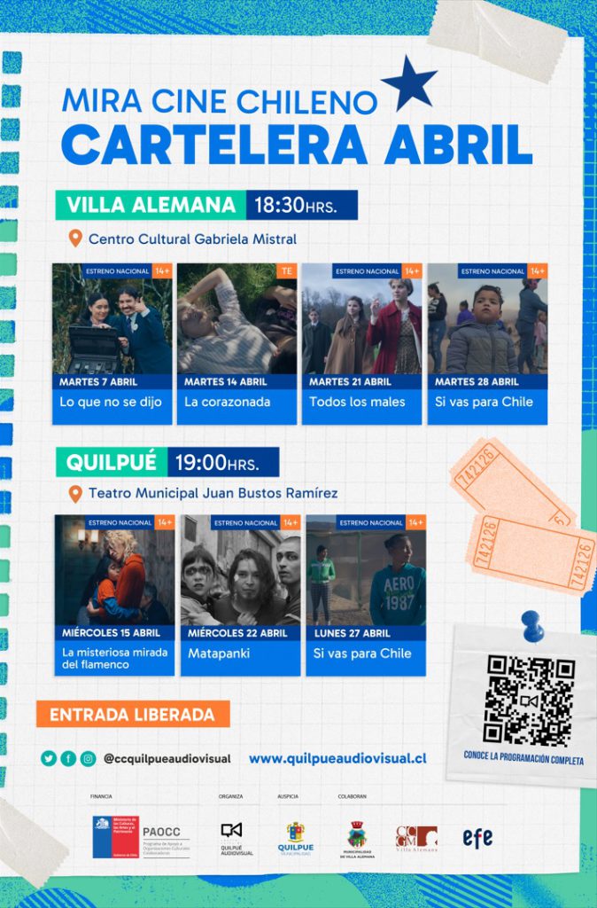“Lo que no se dijo”, “Matapanki”, “La misteriosa mirada del flamenco” y “Si vas para Chile” son algunas de las películas que darán vida a la cartelera de abril en Villa Alemana y Quilpué.